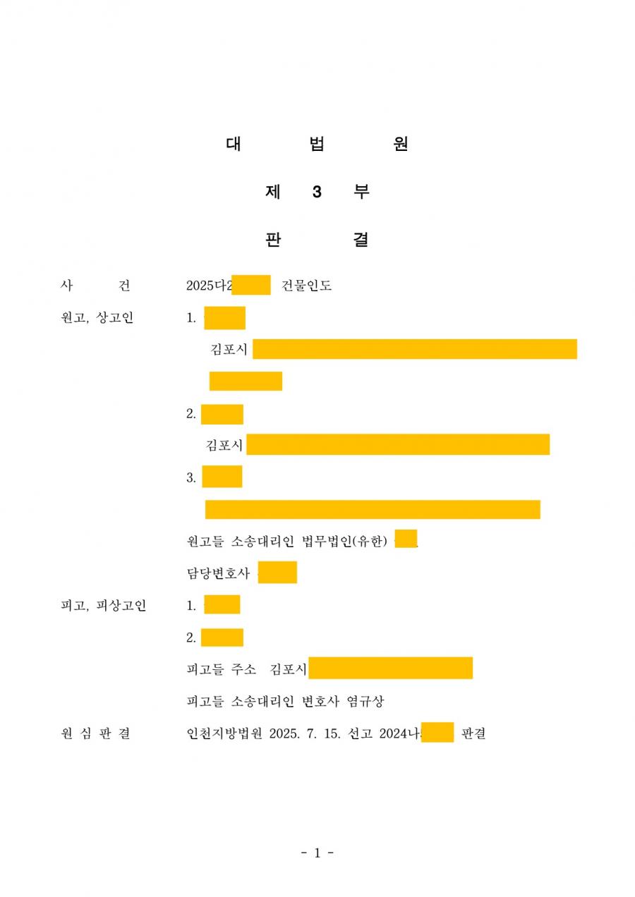 (민사) 건물인도 청구 대법원 기각 승소판결 (대법원 2025다****)