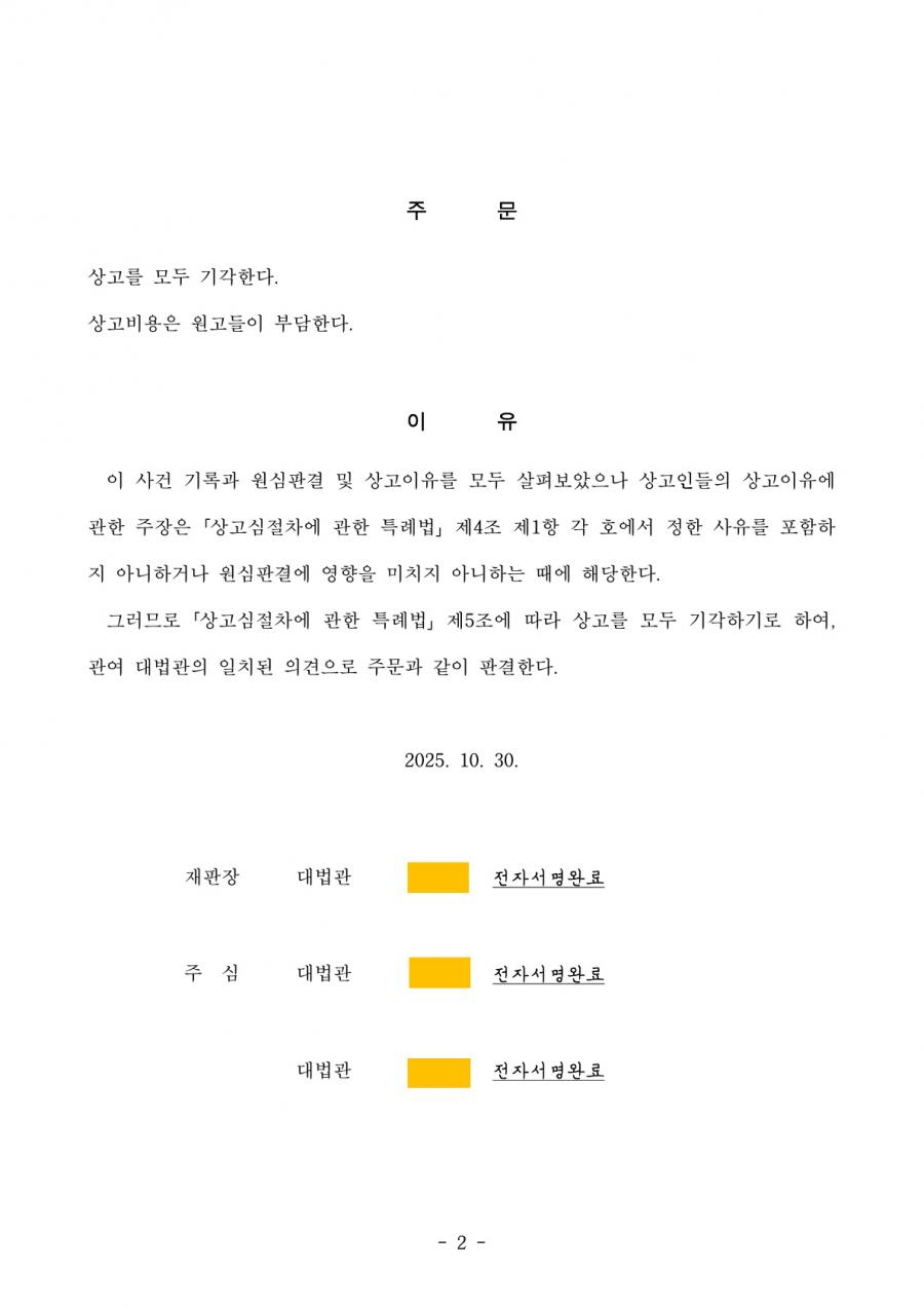 2. 심리불속행기각 피고 승소판결 (2025. 10. 30.)