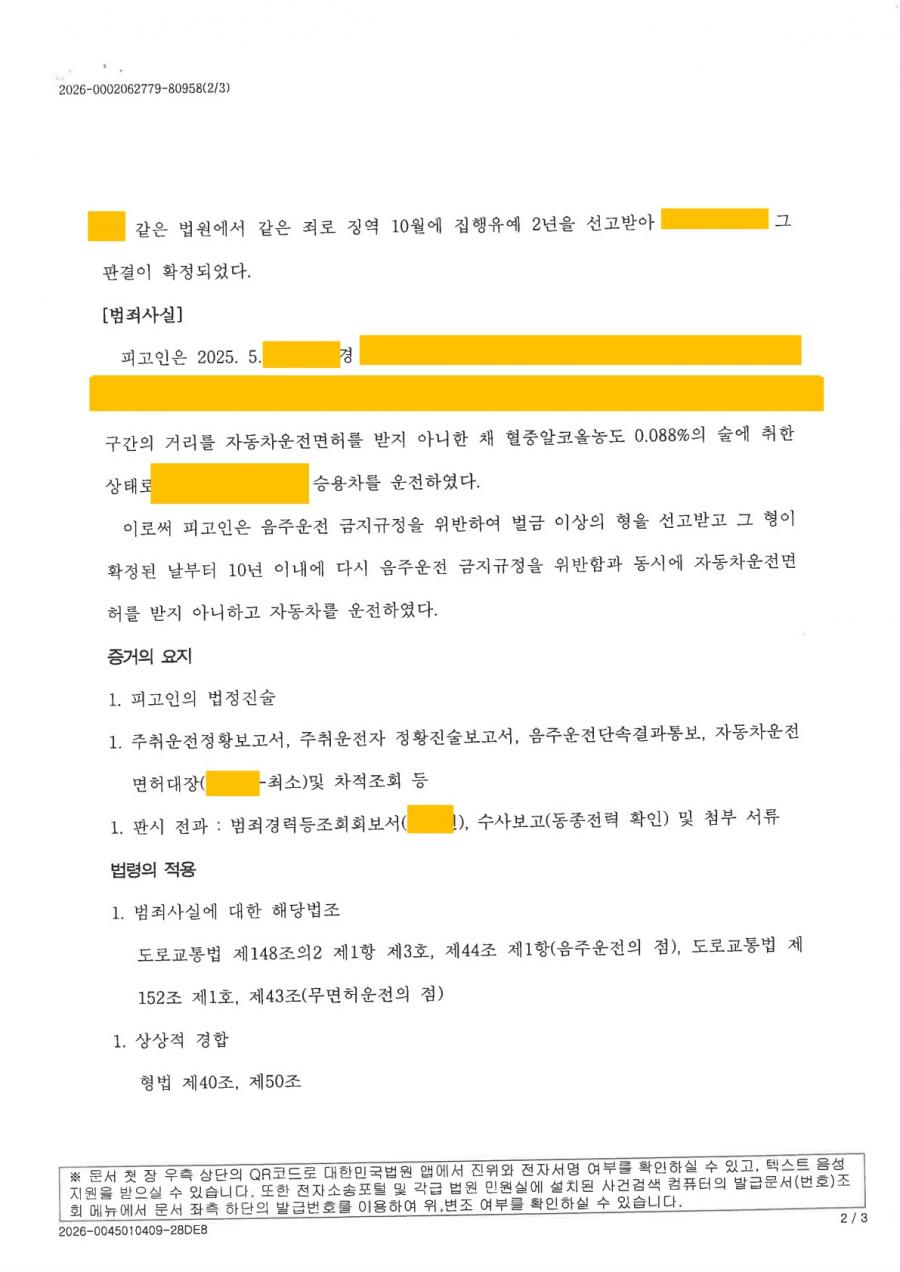 다. 염규상 변호사는 적극적으로 변호인 의견서를 통해 정상참작자료(차량 판매사실, 절주를 위한 교육프로그램 수강 및 자녀를 돌보아야 하는 사정) 등을 제출함으로서 최대한 선처를 해 줄 것을 재판부에 요청하였습니다.